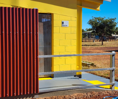 The upgrade includes replacement of all included amenities, electrical and plumbing fixes, painting, and importantly entry ramps for both male and female toilets, making the facility more accessible for individuals with disabilities. The existing roof was replaced with insulated panels 110mm thick to keep it cooler in summer.